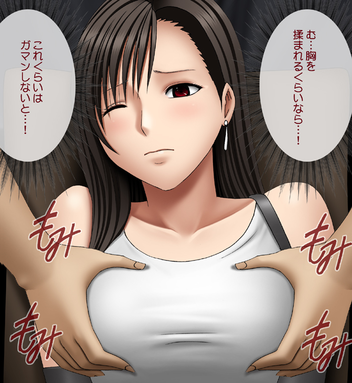 | 这似乎让他心情大好,男人手指更加用力,开始粗暴地揉捏我的胸部。 蒂法「唔……哈,啊……嗯唔! (不行,果然我的胸部……!)」 |